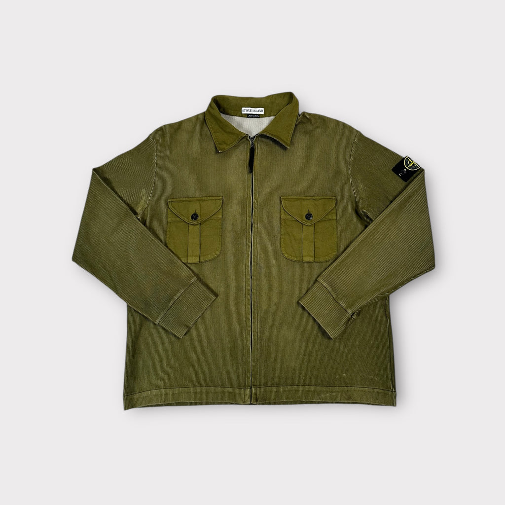 Vintage Ribbed Cotton Zip Sweatshirt Green