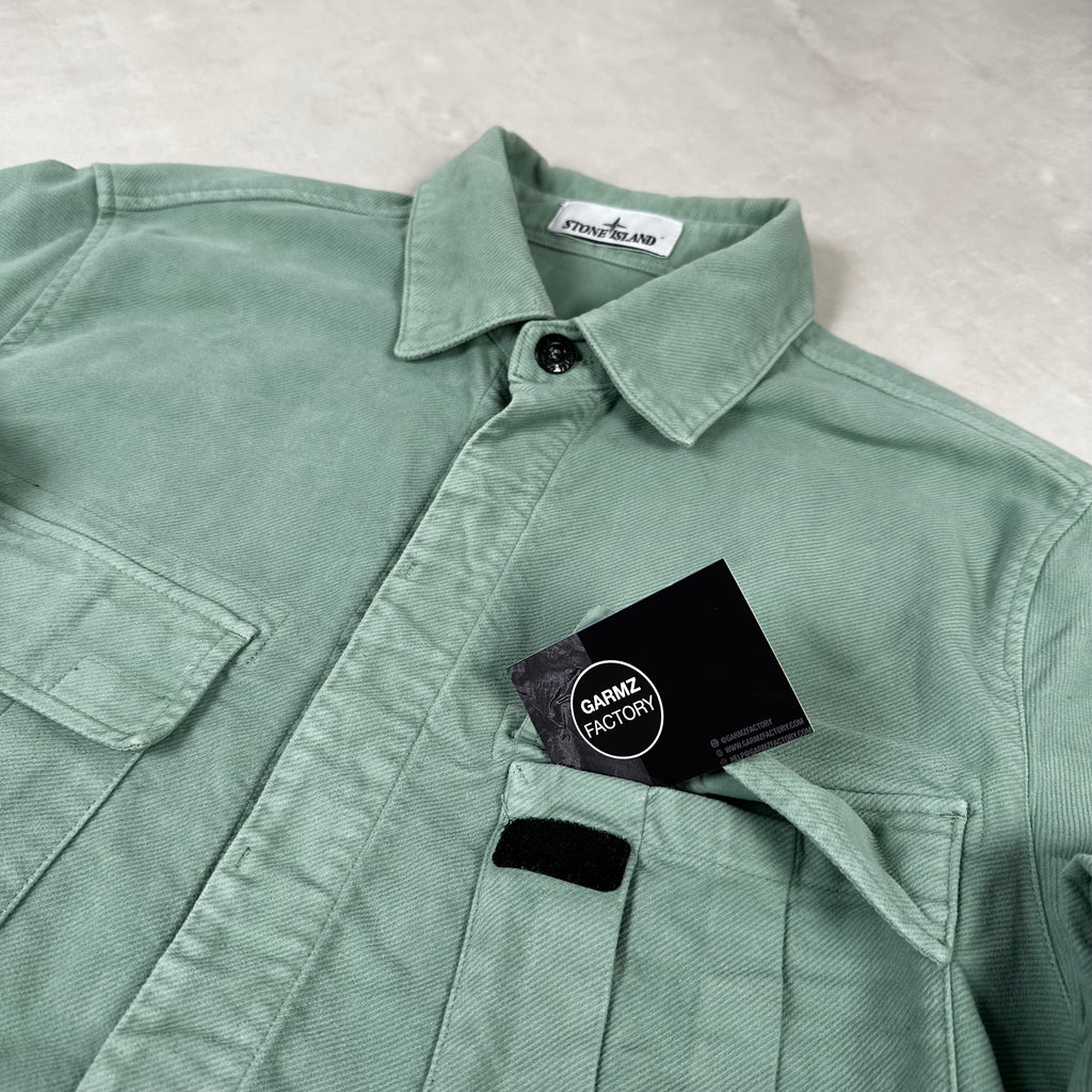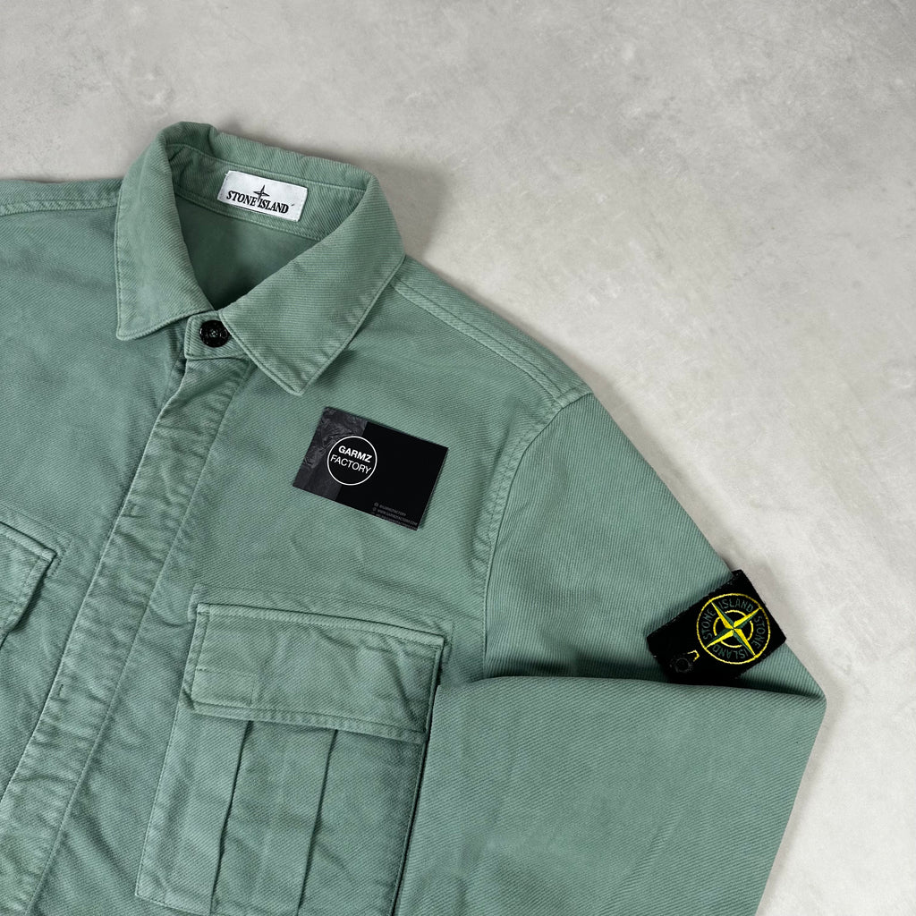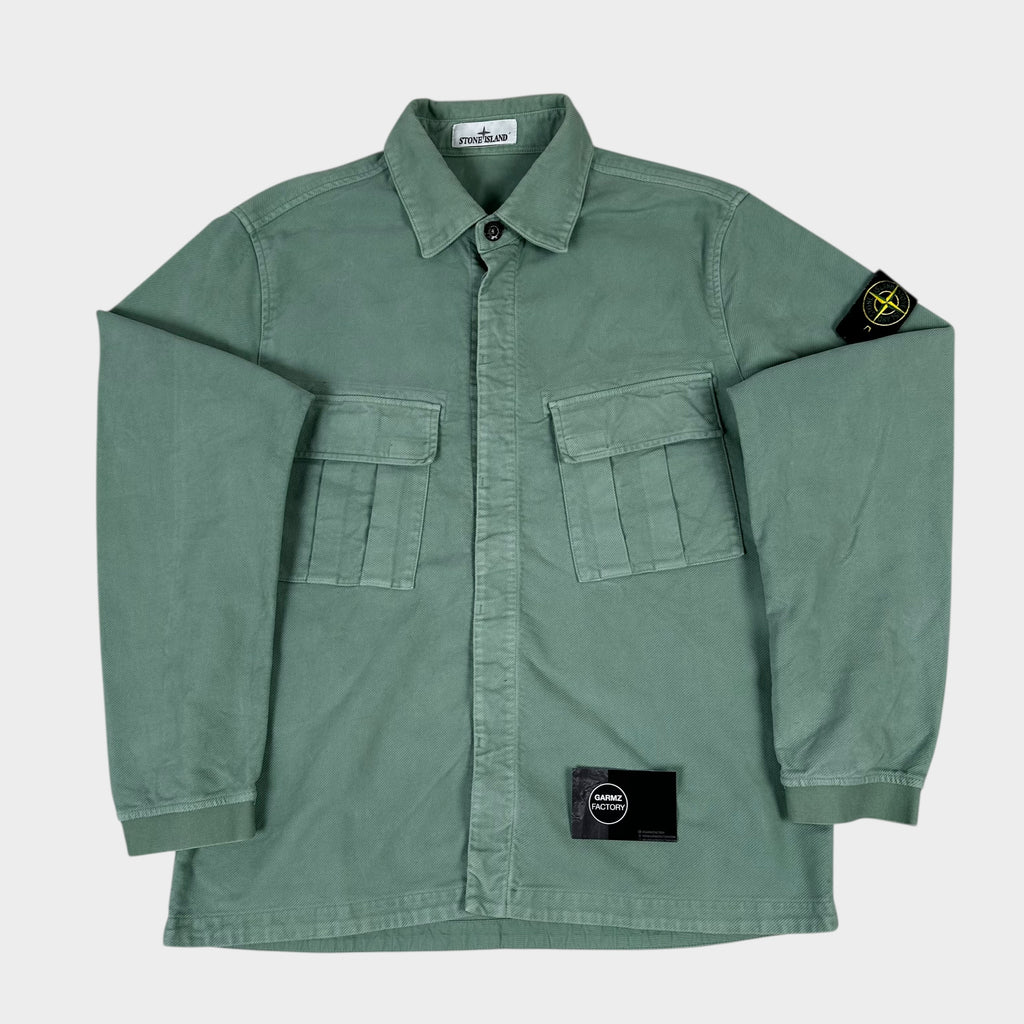 Fit is closest to that of a standard Stone Island XL. The normal chest measurement for Stone Island M Overshirts is 21".