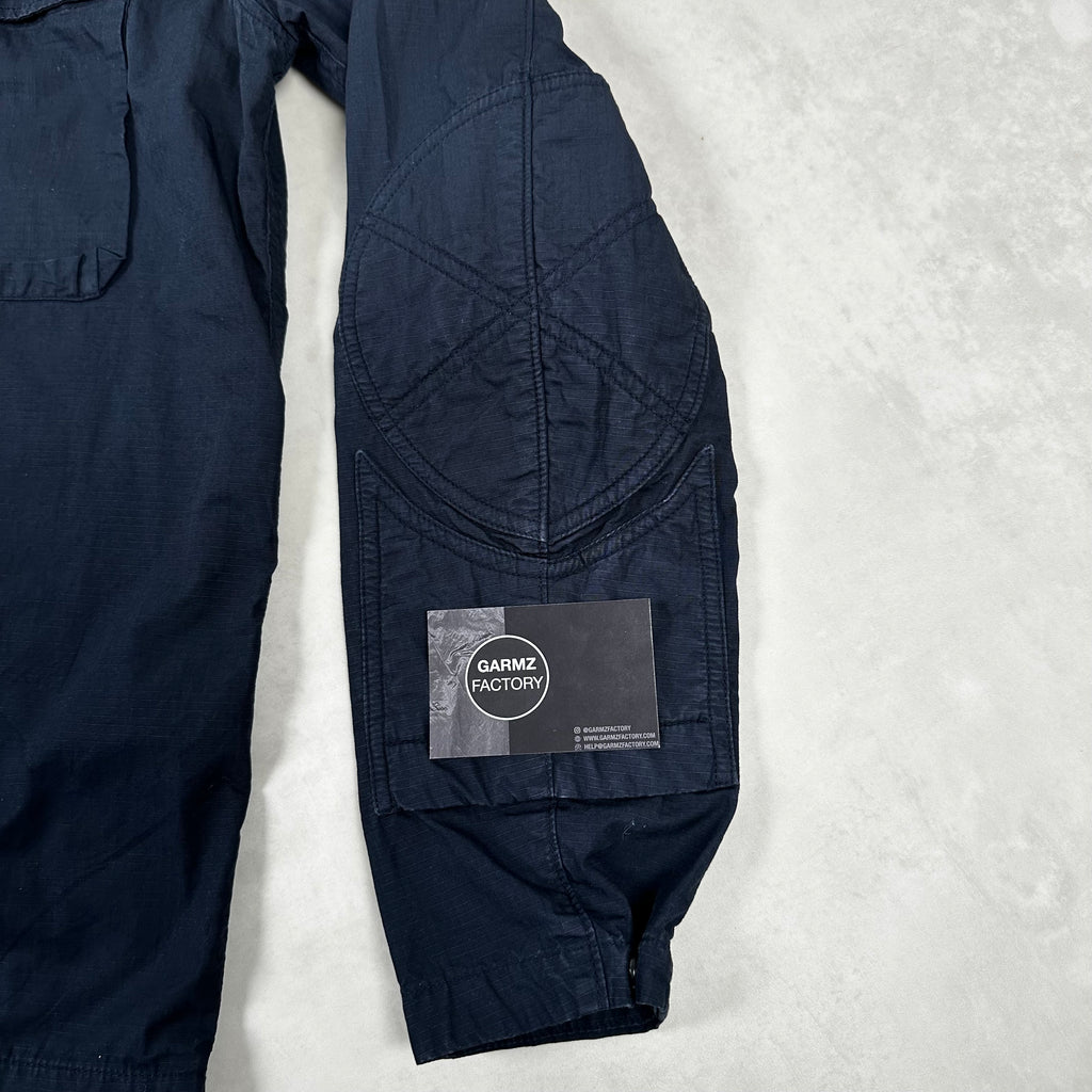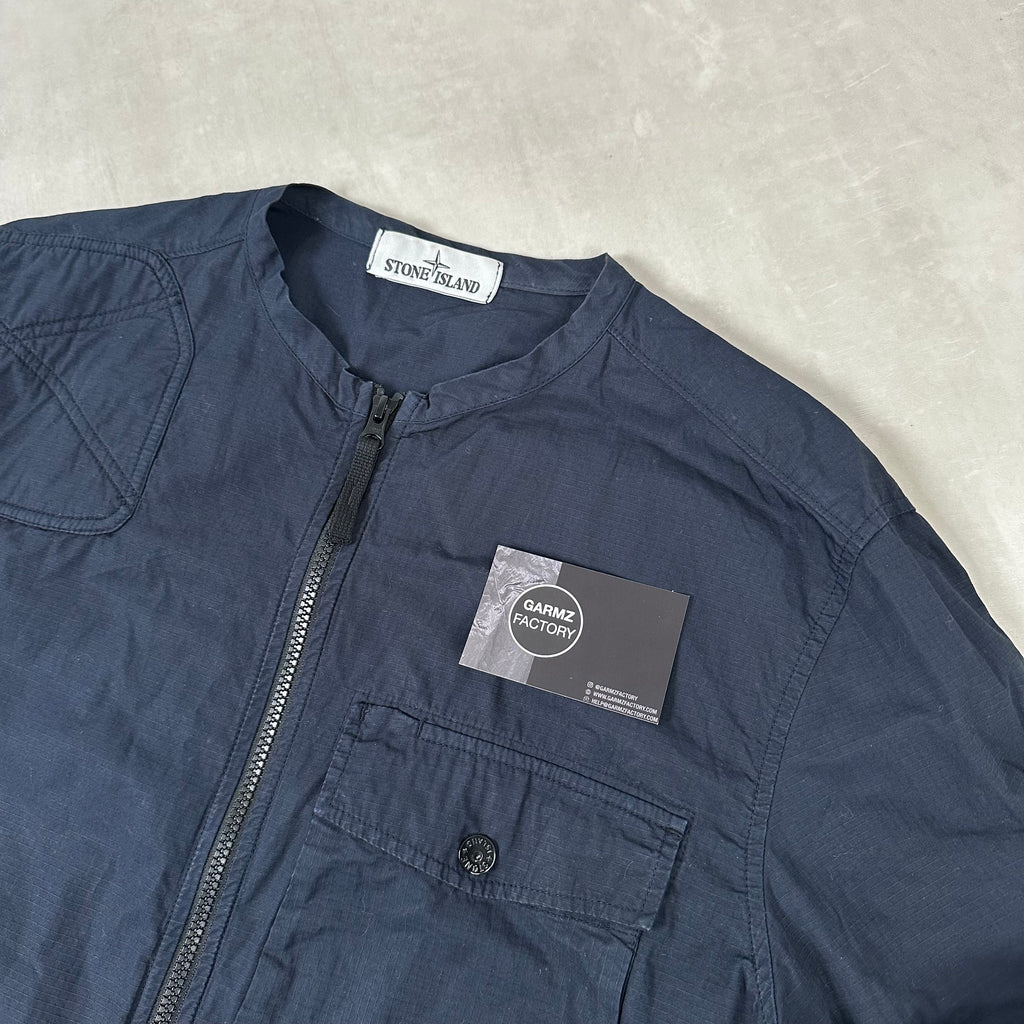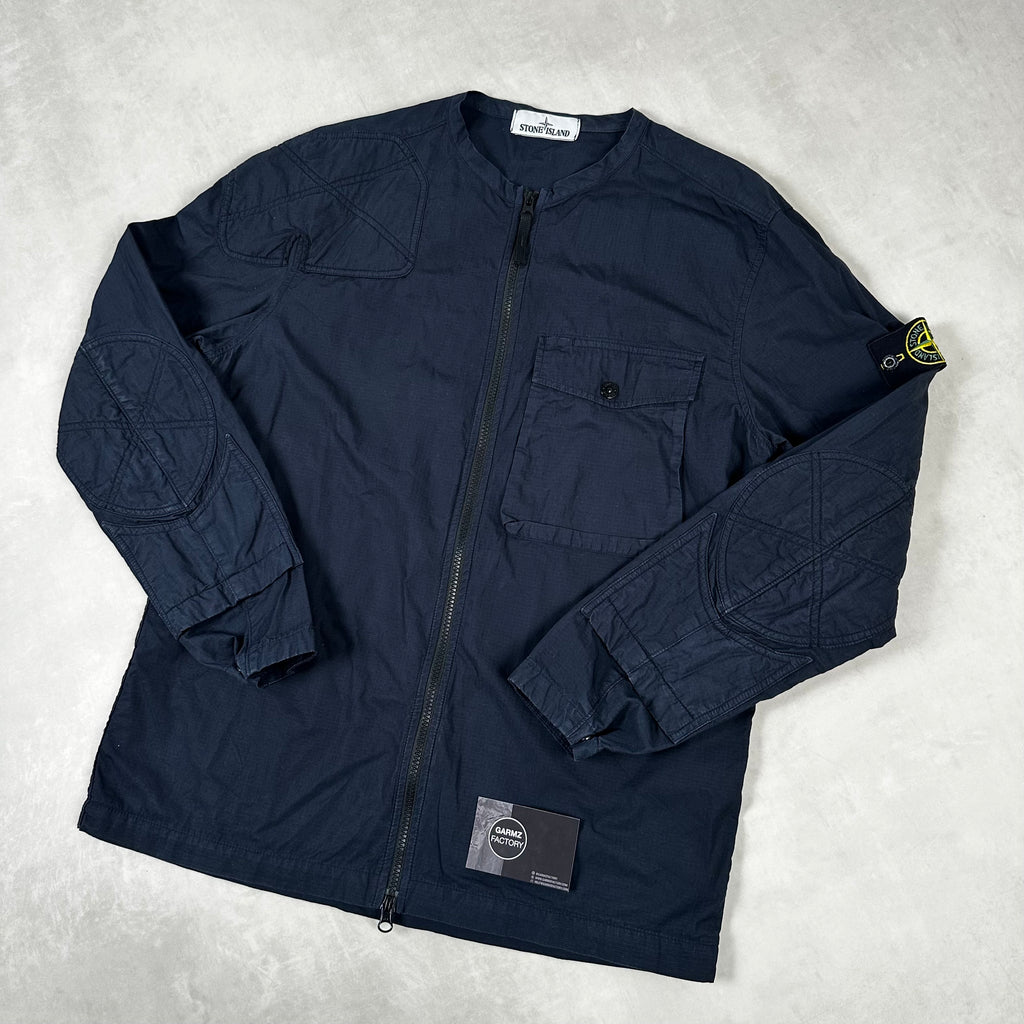 Fit is closest to that of a standard Stone Island L. The normal chest measurement for Stone Island L Overshirts is 22".