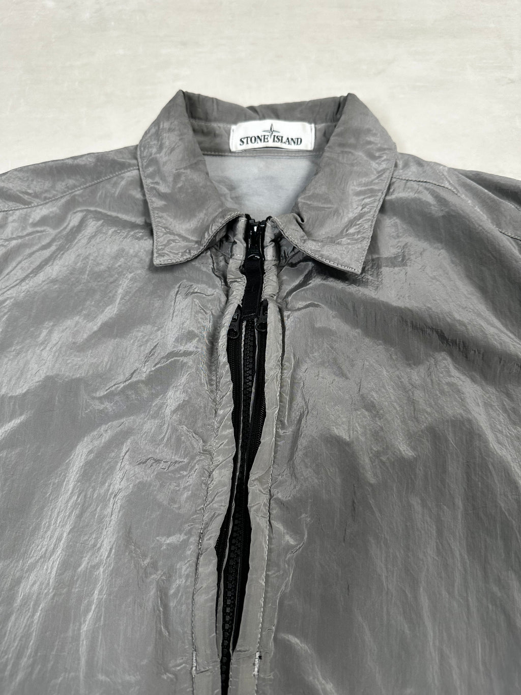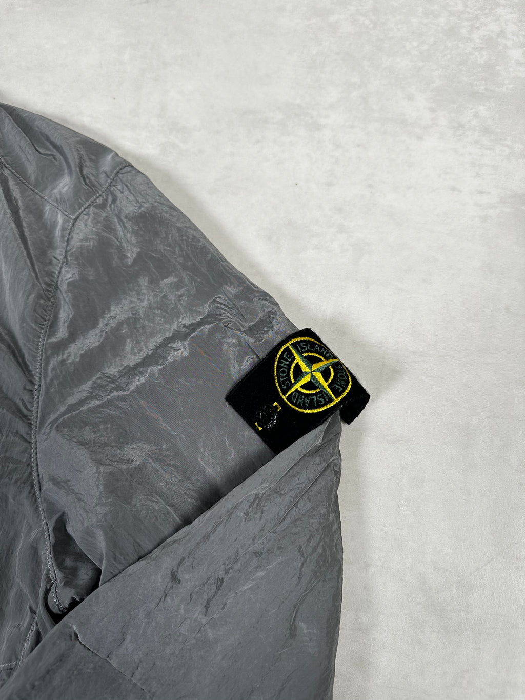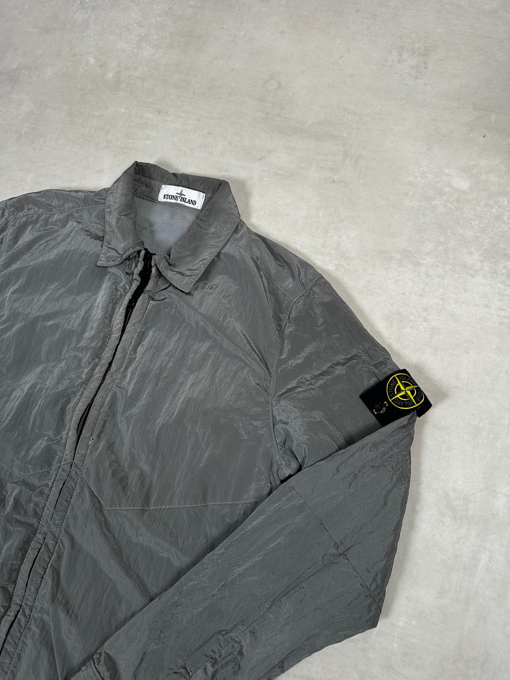 Fit is closest to that of a standard Stone Island M. The normal chest measurement for Stone Island M Overshirts is 21".