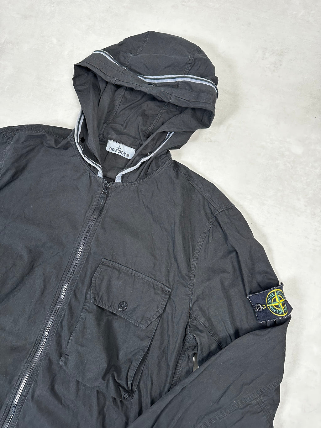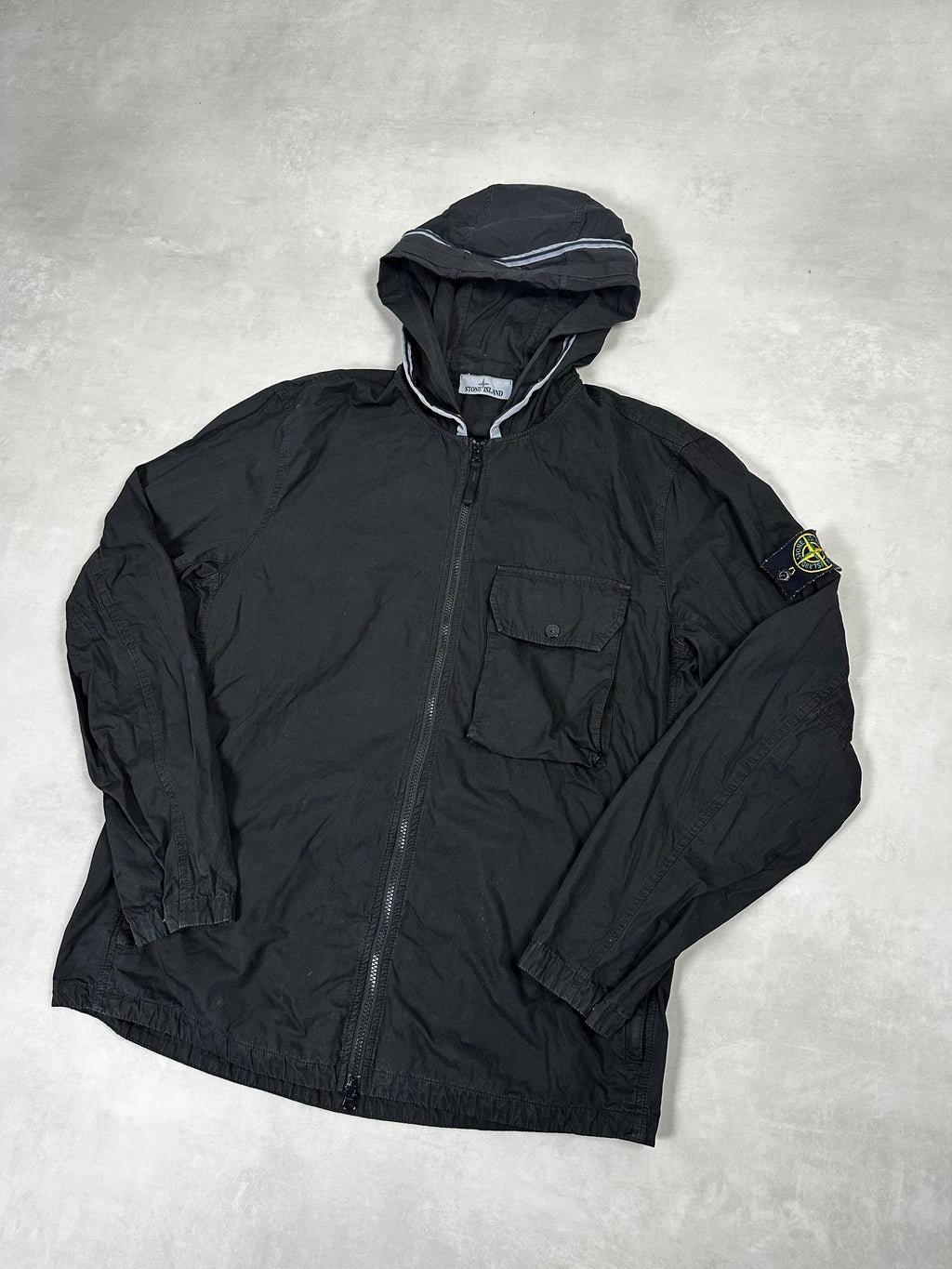 Fit is closest to that of a standard Stone Island XXL. The normal chest measurement for Stone Island XL Overshirts is 23".