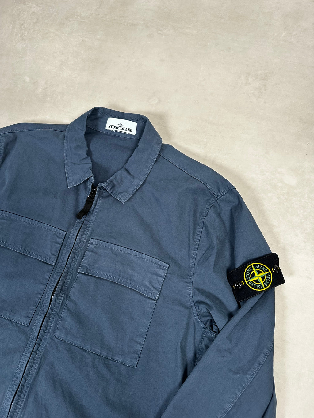 Fit is closest to that of a standard Stone Island L. The normal chest measurement for Stone Island L Overshirts is 22".