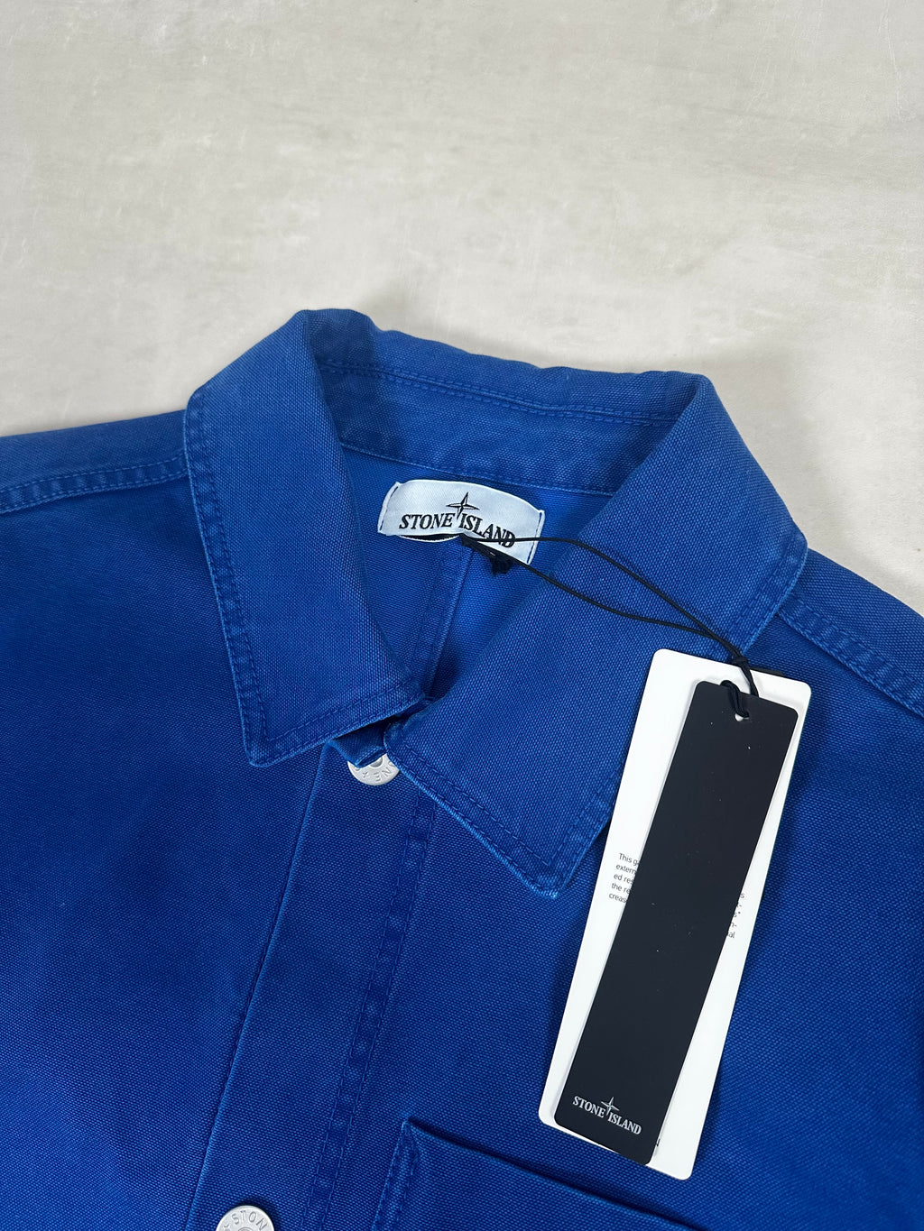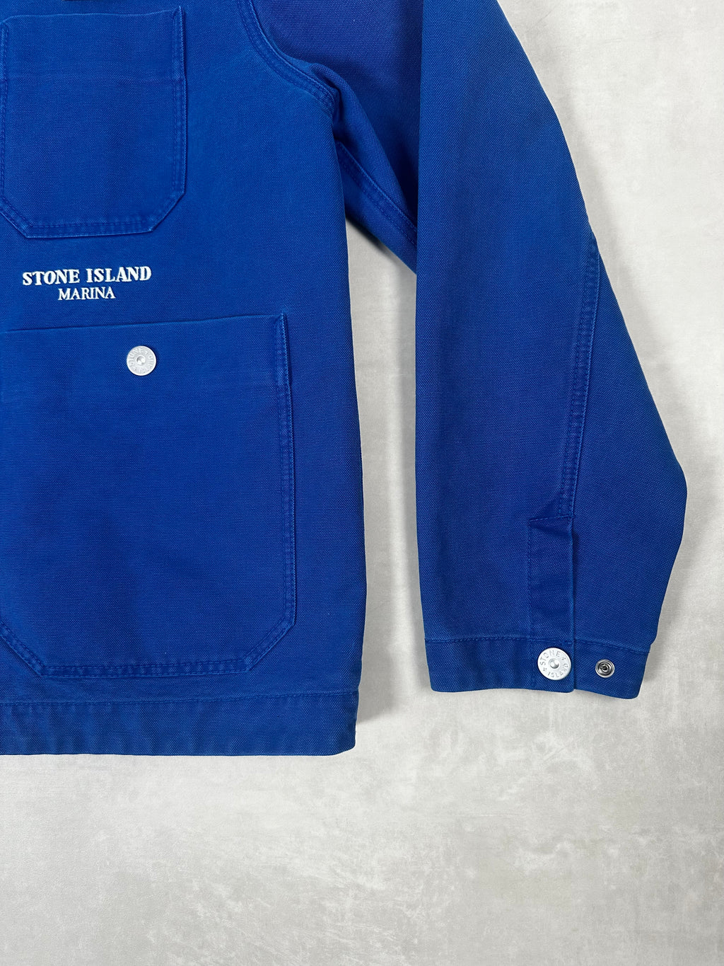Fit is closest to that of a standard Stone Island Marina XL. The normal chest measurement for Stone Island Marina L Overshirts is 22".
