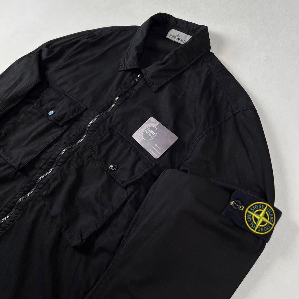 Fit is closest to that of a standard Stone Island XXL. The normal chest measurement for Stone Island XXL Overshirts is 24.5".